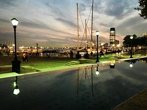 A Manhattan Marina at night by reflected streetlight